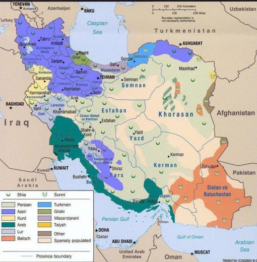 İran resmi devlet haritasında Güney Azerbaycan Türkleri bu eyaletlerde yaşamaktadırlar: 1- Azerbaycan- Garbi (Batı Azerbaycan) 2- Azerbaycan-ı Şarki (Doğu Azerbaycan) 3- Erdebil 4- Zencan 5- Kazvin 6- Hemedan 7- Kum 8- Merkezi 9- Horasan 10- Kirman (bir kısmı) 11- Şiraz (Bir kısmı).